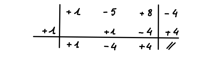 P(1) = 13 - 5·12 + 8·1 - 4 = 1 - 5 + 8 - 4 = 0