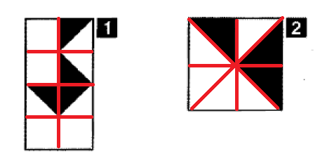 Si suddivide la figura 1 in 8 quadrati: la parte annerita corrisponde a 2 quadrati (unione dei 4 triangolini neri) → il rapporto tra parte annerita e area totale è quindi 2/8.