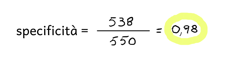 Applicando la formula precedente al caso in esame, si ottiene il valore della specificità: