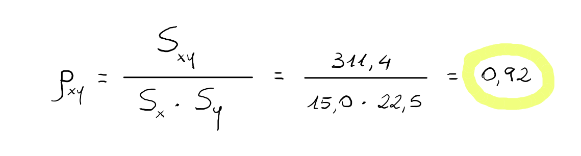 dove Sx e Sy indicano i valori delle deviazioni standard delle variabili X e Y.