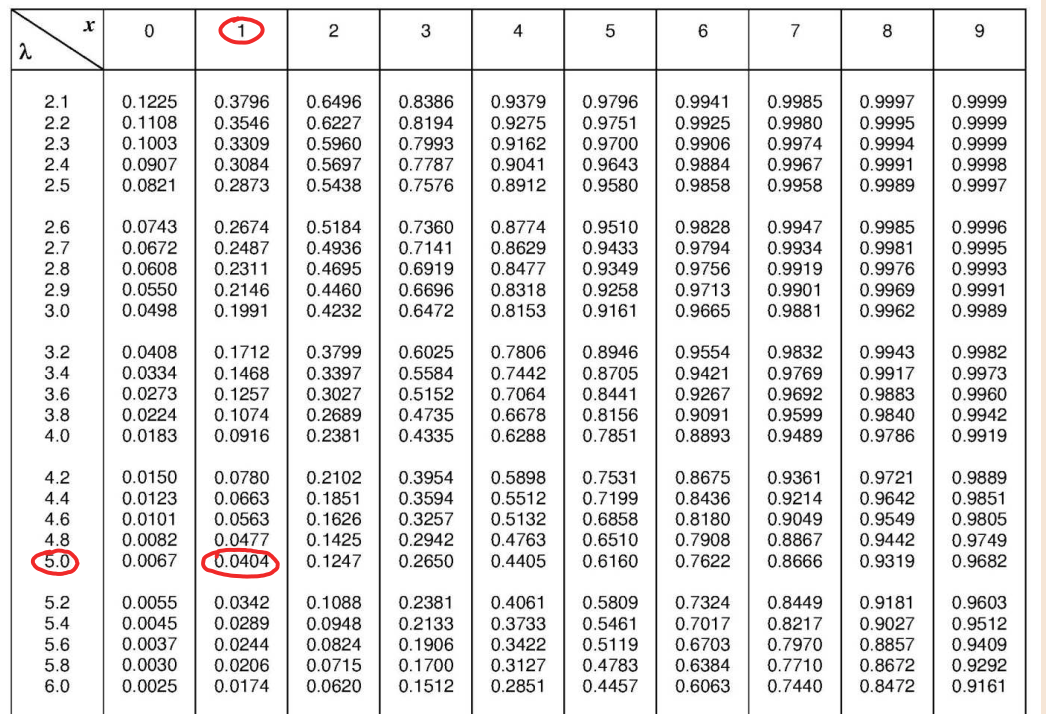 Dalle tavole di Poisson sotto riportate si ottiene, quindi, il risultato finale richiesto dal punto (a):